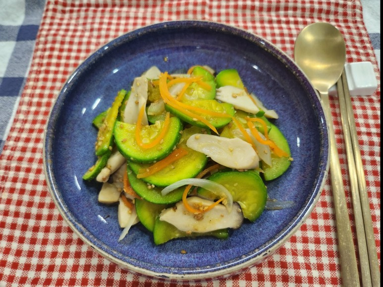 全ての材料が、適度な歯ごたえを保ちつつ、美味しく仕上がったか確認してから、器に盛り付ければ、美味しいエリンギとズッキーニの炒め物の完成です!温かいままでも美味しいですし、冷まして常備菜として楽しむのも良いでしょう。
