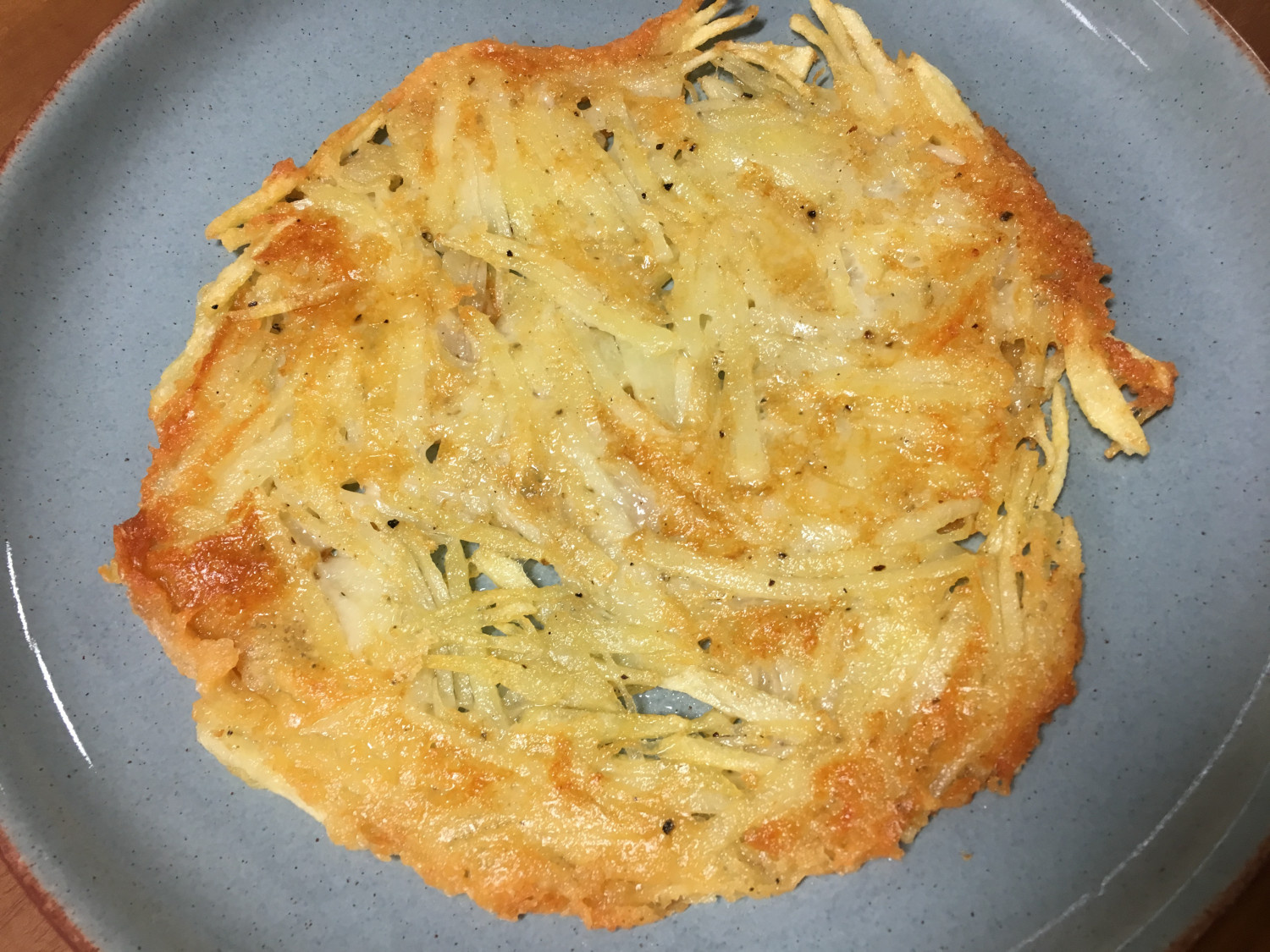 中火で、じゃがいもチヂミの下面がきつね色になってカリッとなるまで待ち、そっとひっくり返してください。反対側も同様に、きつね色でカリッとなるまで焼けば完成です!