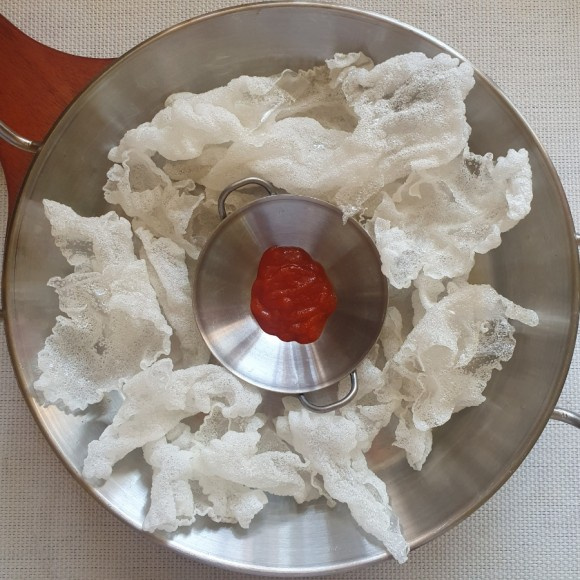 ライスペーパー揚げの味の決め手はソース!甘辛いソースは、揚げ物の油っこさを和らげ、風味を豊かにしてくれます。どんなソースを選ぶかで、様々な味を楽しめます。スリラチャ、チリソース、お子様が好きなケチャップでも!お好みのものを用意してください。