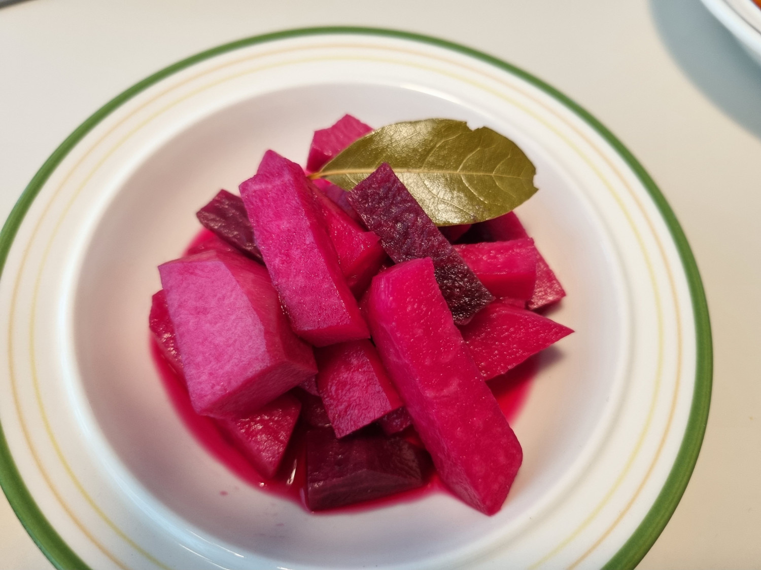 実家のお母さんが畑で育てた、甘くてシャキシャキのコールラビとビーツを少しだけもらってきました。生でそのまま保存するのは少し気が引けたので、ちょうどピクルスが切れていたのを機に、コールラビ2個とビーツでピクルスを作ることにしました。どんな野菜でピクルスを作る時も、水:酢:砂糖=2:1:1の割合を覚えておけば大丈夫!このレシピで、美しく色鮮やかで、食感も楽しい美味しいピクルスが作れますよ。