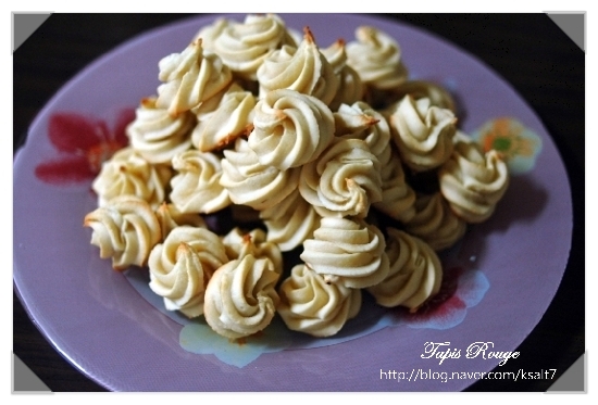 完成した生地は、星型の口金が付いた絞り袋に全て移します。オーブンシートまたはテフロンシートを敷いた天板、あるいは溶かしバターを薄く塗った天板を用意します。こうすることで、焼きあがったお菓子が天板にくっつかずにきれいに剥がれます。生地を、約2〜3cmの大きさに、サンツ(韓国の伝統的な結び方)のような形をイメージしながら絞り出してください。一口サイズで均一に絞ると、オーブンでムラなく焼きあがります。