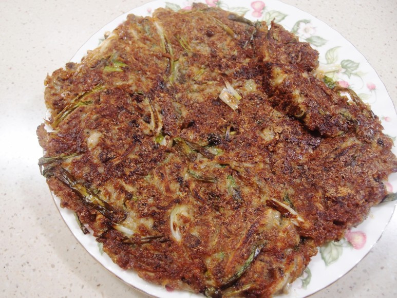米粉の生地は小麦粉の生地に比べて弾力があまりないため、チヂミが壊れやすいことがあります。中火でじっくりと、片面がきつね色になるまで焼いたら裏返してください。米粉特有のサクサク感を出すために、しっかりと焼き色をつけることが重要です。