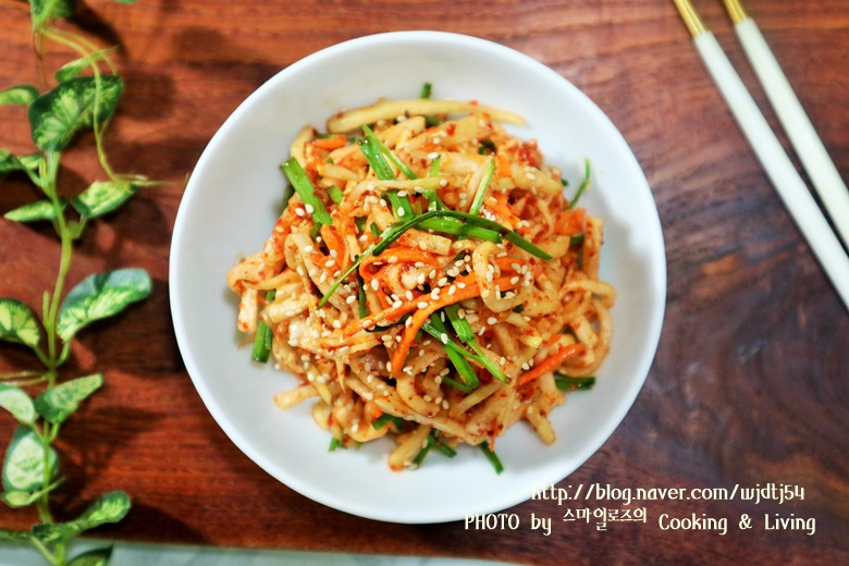 こうして作った大根サラダは、コリコリとした食感がまるで干し大根の和え物(ムルマレンイムチム)のようです。温かいポッサム(茹で豚)と一緒に添えると、本当に素晴らしい組み合わせになりますよ!