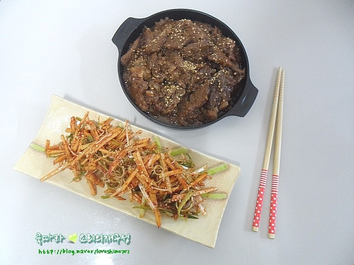 ヒント:一緒に添えるプルコギ(漬け込み焼肉)のタレは、すりおろしたりんごとキウイを使うと作れます。詳しいレシピは、私のプルコギのタレのレシピ(@6869321)を参考にしてください!