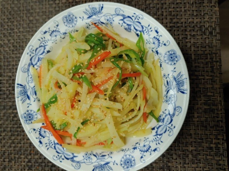 美味しいじゃがいもの細切り炒めの完成です!温かいご飯に添えて、どうぞ召し上がれ。