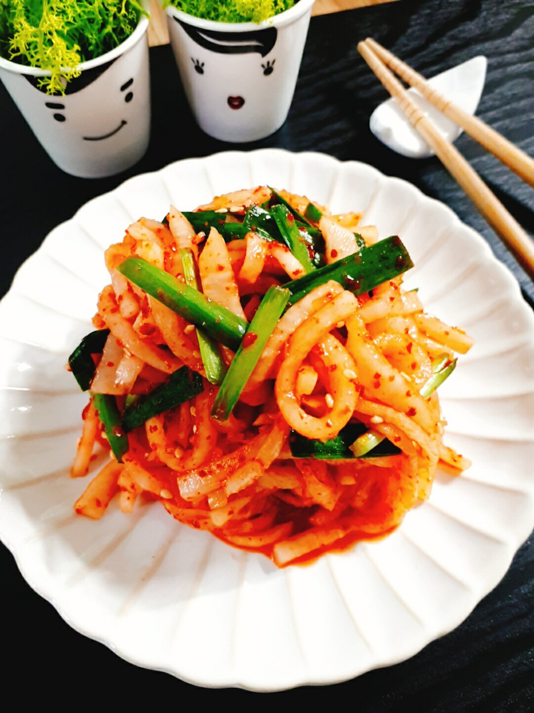 瑞々しい夏大根と香りの良いニラを使った、誰でも簡単に作れるシンプルな大根の和え物レシピをご紹介します。ご飯のおかずにも、ビビンバの具材にもぴったりな美味しさです。