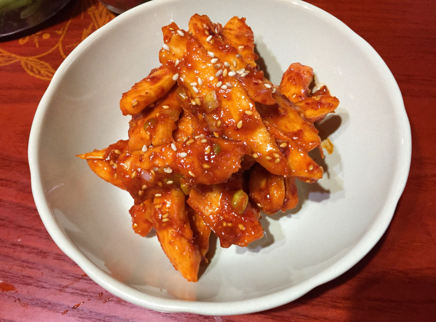 シャキシャキ!ピリ辛甘酢ダレのトッペギ・ムチム(Deodeok Muchim)