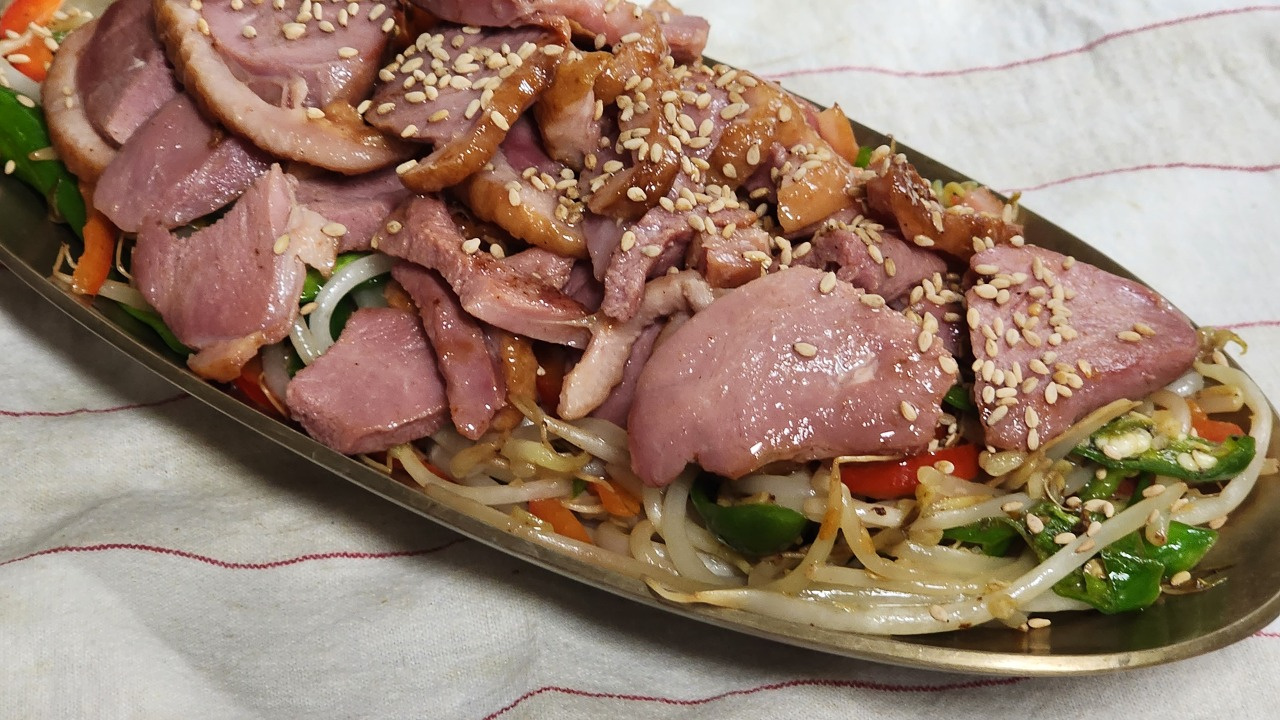 シャキシャキ!鴨ロースと豆苗の炒め物:ご飯のおかずにもおつまみにも最高!
