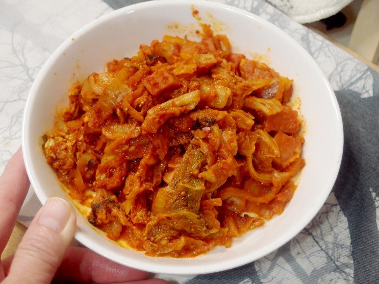 - よく熟成した白菜キムチ 1/2株 (約500g)