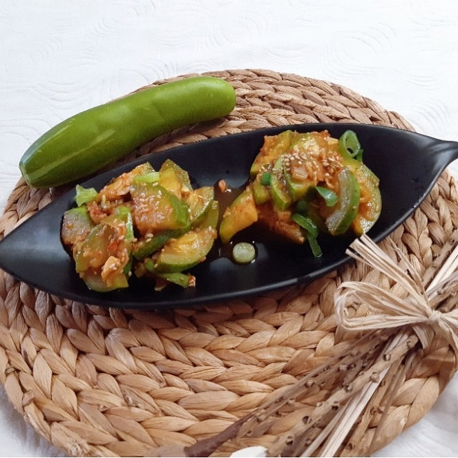 はい、これで簡単なのに見栄えの良いズッキーニの炒め物が完成です!ご飯のおかずにも、お弁当のおかずにもぴったりです。ヒント:醤油の代わりに、アミの塩辛(セウジョッ)で味付けすると、旨味が増してとても美味しくなりますので、お好みで試してみてください。