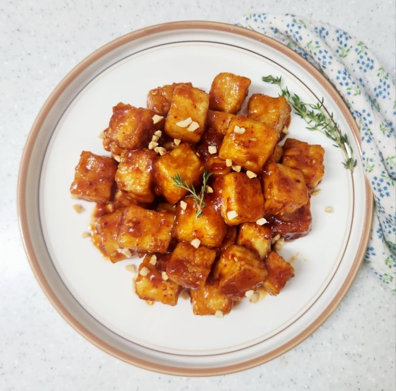 凍った豆腐で作る、甘辛チリソースの絶品豆腐カンジョン!おやつやおつまみに最高