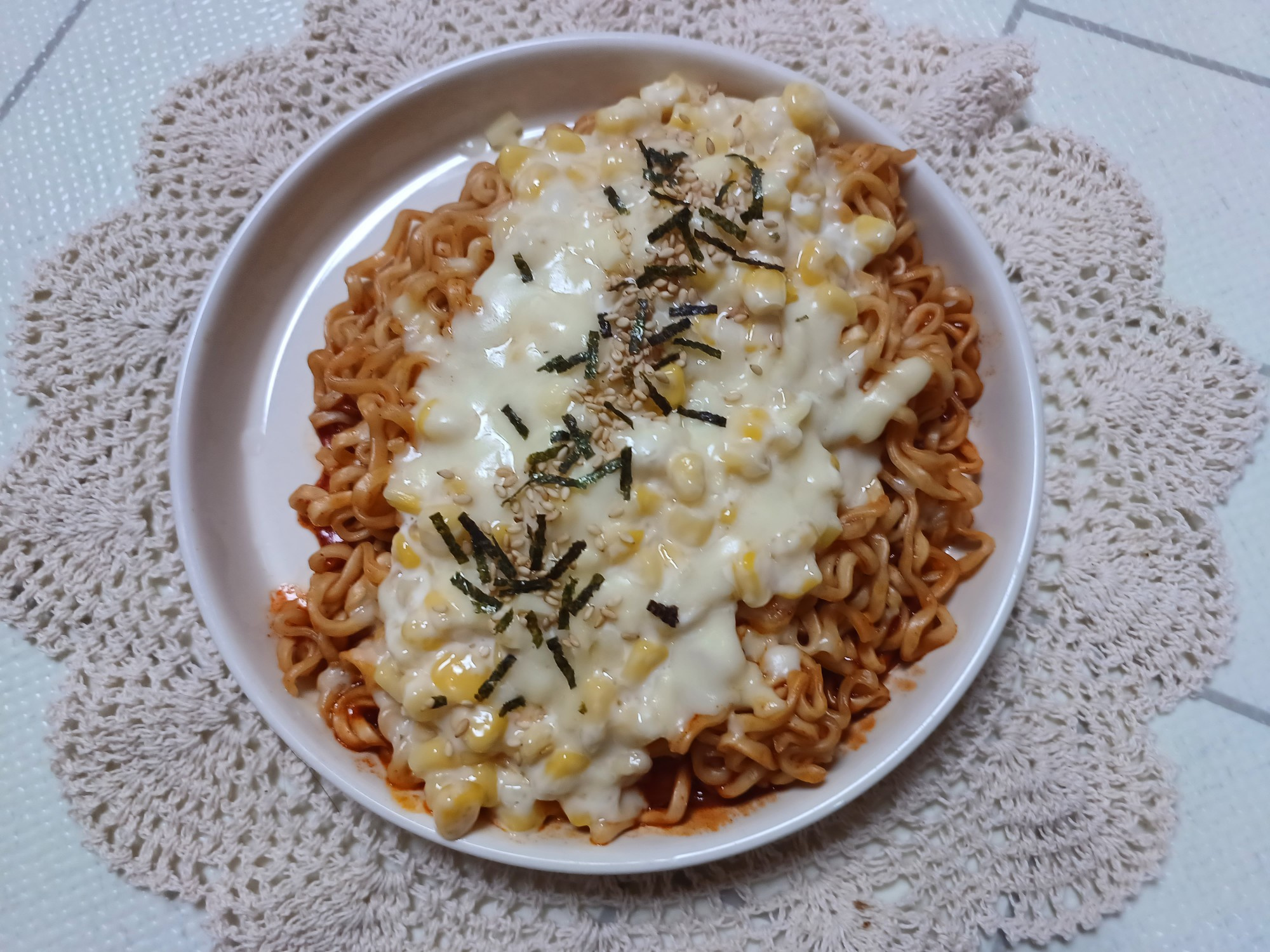 韓国のテレビ番組「ソジンの店」で紹介され話題になった、甘辛いラーメンの作り方です。「チーズコーンプルダック炒め麺」としても知られています。もちもちの麺とピリ辛のプルダックソース、そしてとろーりチーズと甘いコーンの組み合わせは、誰からも愛される特別な一杯になるはずです!