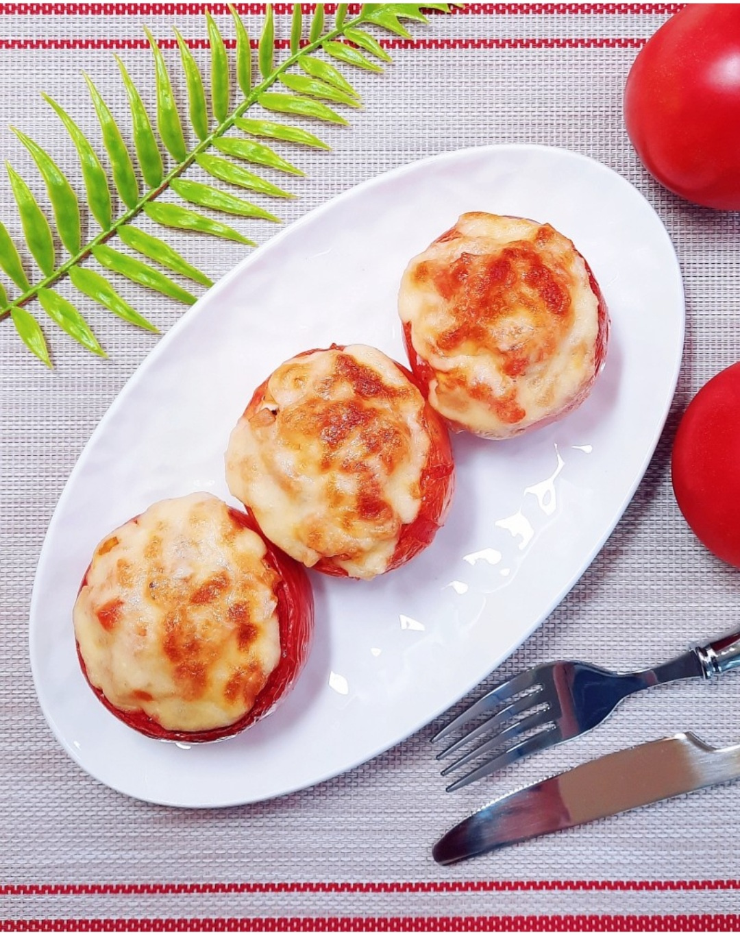 生で食べても栄養満点のトマトですが、加熱することでさらに栄養価が高まることをご存知でしたか?しかも、加熱するとトマトの甘みが引き出され、とろりとした食感になるため、より食べやすくなります。今日は、そんなトマトをもっと美味しく楽しめる、とっておきのメニューをご用意しました。新鮮なトマトの種とワタをくり抜き、そこに卵を割り入れ、さらに炒めた具材ととろーりモッツァレラチーズをたっぷり乗せてオーブンで焼き上げる、見た目も華やかな一品です。ブランチや、ちょっとした軽食にもぴったり。さあ、美味しいトマトの卵詰め作りを始めましょう!
