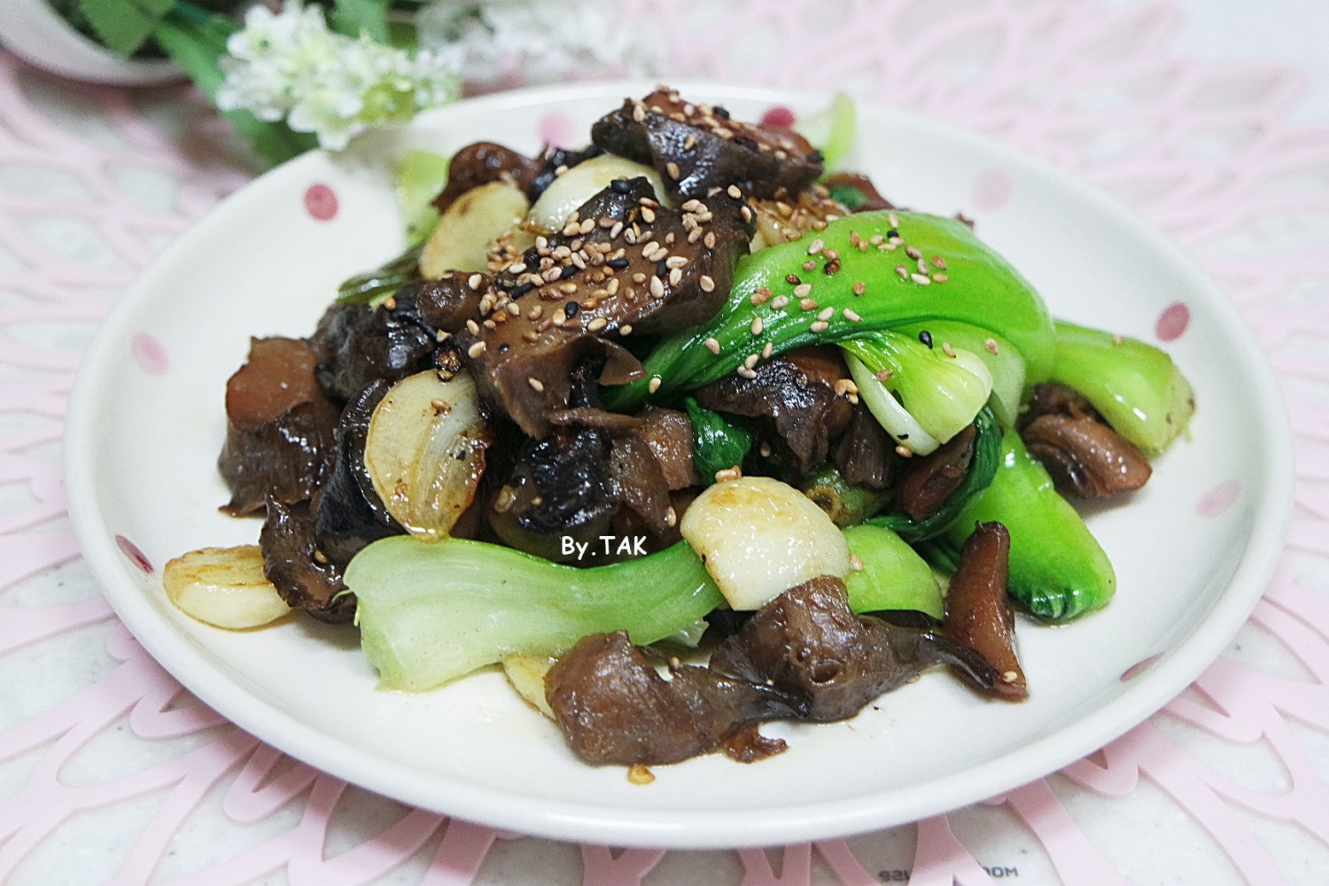 最後に、準備しておいたチンゲン菜を加えて中火にします。チンゲン菜のシャキシャキとした食感を残すため、さっと火が通る程度、30秒~1分ほどで炒め合わせれば、美味しいバターつぶ貝炒めの完成です!
