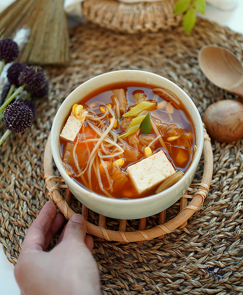 シャキシャキの豆もやしと酸味のあるキムチの素晴らしい調和!このキムチ豆もやしスープは、肌寒い日に体を温め、二日酔いにも最適です。豆もやし一袋と冷蔵庫にある古漬けキムチがあれば、誰でも簡単かつ素早くこの美味しいスープを作ることができます。脂っこい胃を落ち着かせたり、昨夜飲みすぎた日の朝食にぴったりです。シンプルながらも深い味わいの秘訣を今すぐお教えしましょう!