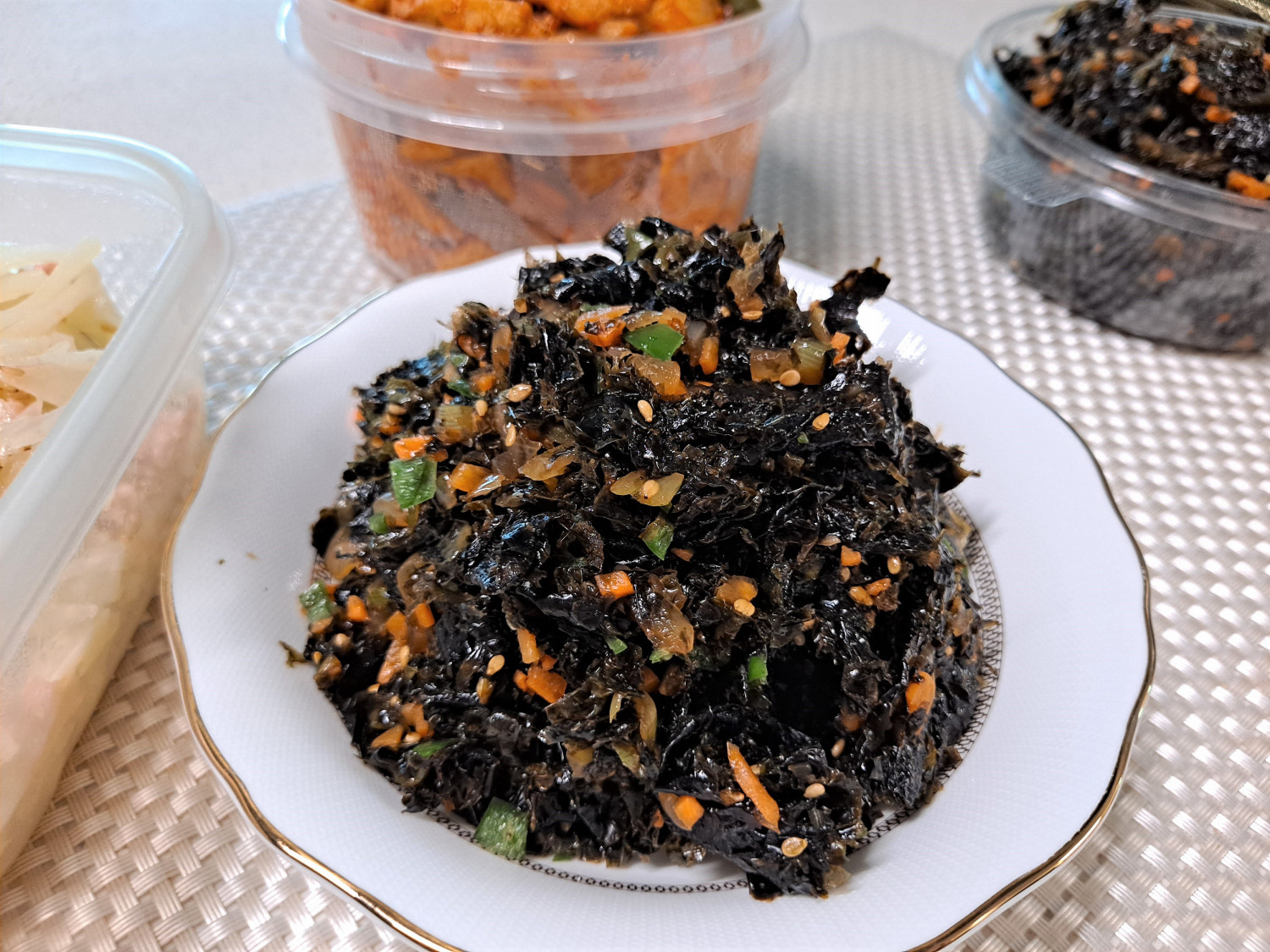 古漬けの海苔を使っても良いですし、よりパリパリとした食感がお好みであれば、コプチャンキム(곱창김)を使うのもおすすめです。コプチャンキム独特の噛み応えのある食感が魅力です。