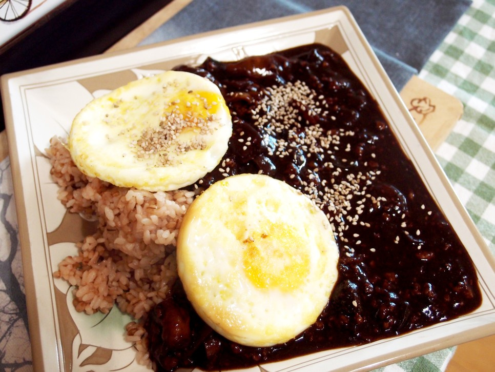 温かいご飯の上に、たっぷりと煮込んだサチョン・チャジャンをかけます。その上に、ピリ辛の豆板醤(ラージャン)大さじ1を乗せ、準備した目玉焼きを彩りよくトッピングすれば、見た目も食欲をそそるサチョン・チャジャンライスの完成です。ピリ辛、甘み、そしてシーフードと野菜の食感が織りなす、絶品の一皿料理をお楽しみください!