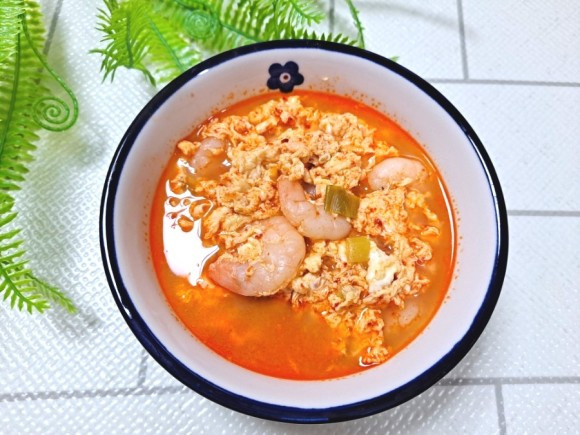 おすすめ夕食メニュー:エビと卵のピリ辛スープ レシピ ~エビ入りで美味しい卵スープの作り方~