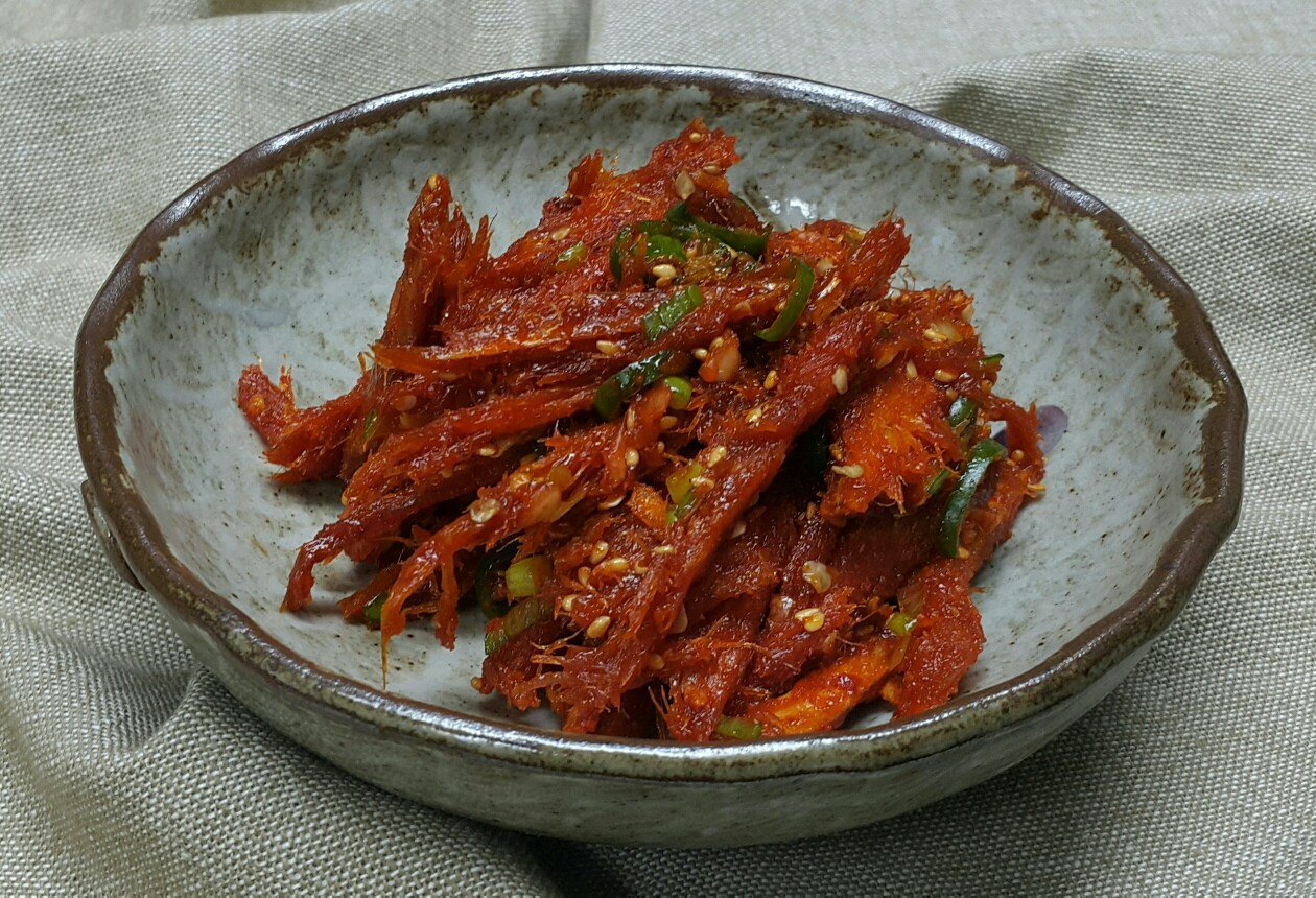 食欲をそそる、ピリ辛甘口の干しスケトウダラ和えのレシピ