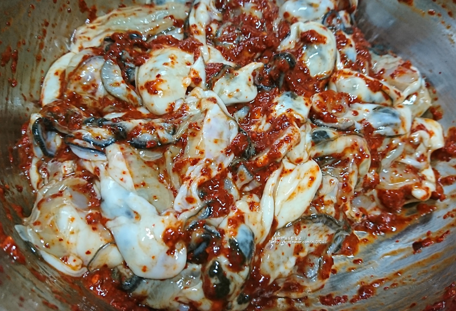 全ての調味料が牡蠣によく染み込むように丁寧に和えれば、美味しいオリゴルジョッの完成です!ピリ辛で甘辛い味が食欲をそそります。