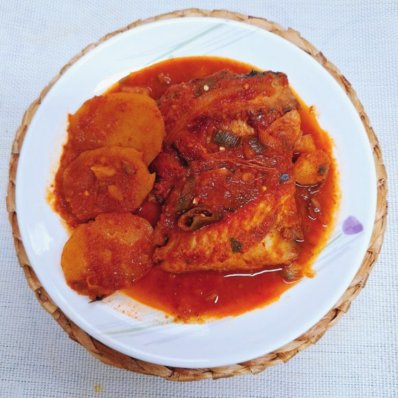ピリ辛甘酢あんのサバとじゃがいもの煮付け