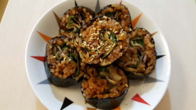 キンパをしっかりと巻けば、ピリ辛豚バラキンパの完成です!アイアムカップルは、食べやすい一口サイズにするために、焼いた海苔でも巻いてみました。しかし、普通のキンパ用海苔ではなく焼いた海苔を使うと、海苔が破れたり裂けやすくなることがわかりました。時間に余裕がある場合や、きれいに仕上げたい場合は、必ずキンパ用海苔をご使用いただくことを強くおすすめします。美味しく召し上がれ!