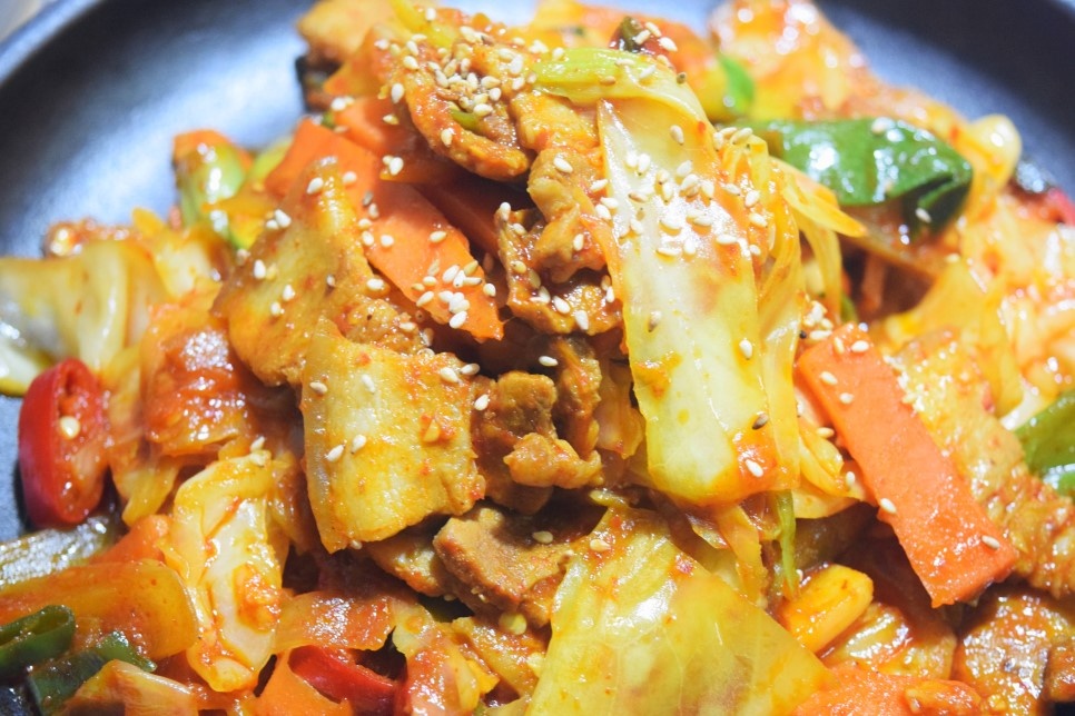 キャベツは、チェユッポックンとよく馴染むように、大きめにざく切りにします。食感が楽しめます。