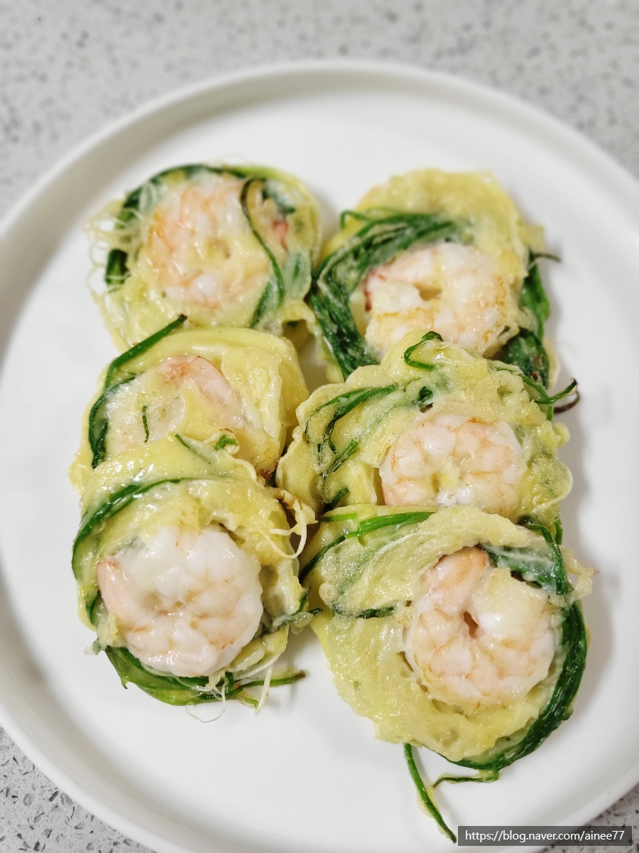 プリプリ海老と香ばしいヨモギの出会い!春の香り満載 海老よもぎチヂミ