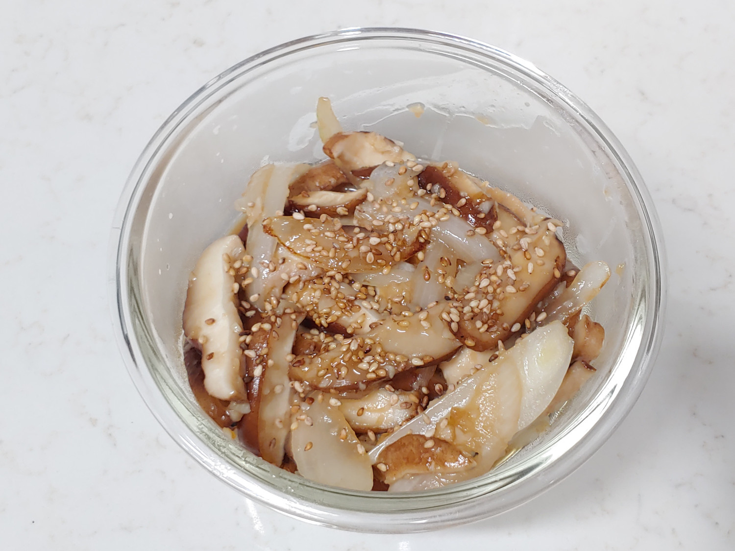 ごま油と炒りごまを加えて、さっともう一度混ぜ合わせたら、美味しいオイスターソース椎茸炒めの完成です!温かいご飯の上に乗せて丼にしても、他のおかずと合わせても美味しいですよ。香ばしくてプリプリの椎茸の味に、きっとみんな夢中になるはずです!