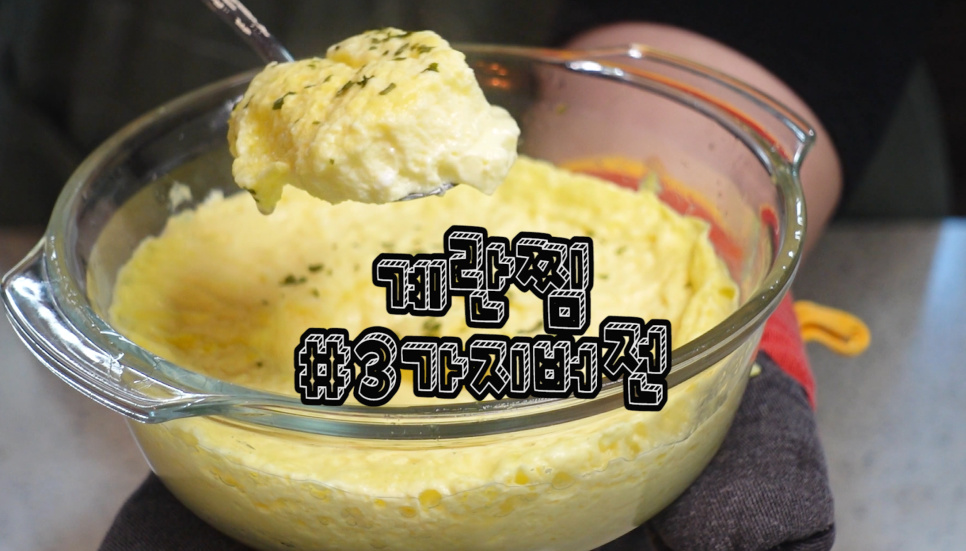 最後に、ホテルブレックファストのような滑らかなプリン茶碗蒸し(方法3)です。このレシピは、チョン・ホヨンシェフの方法を参考にしました。卵2個を割って入れます。