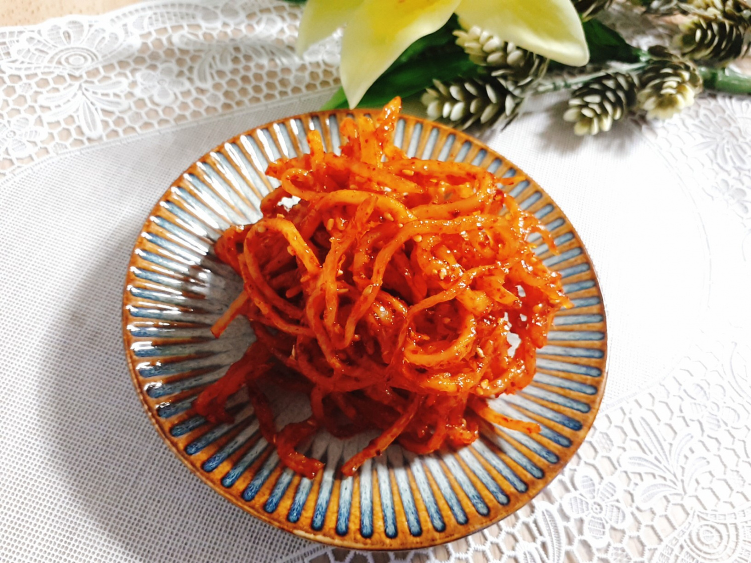 ペク・ジョンウォンシェフの万能乾燥物用万能だれを使って、イカの塩辛和え(チンミチェムチム)を作りました。