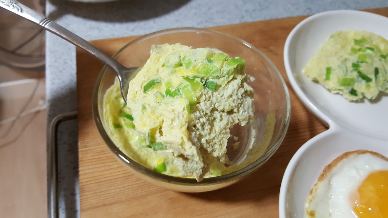 電子レンジに入れ、まず2分間加熱します。2分経ったら様子を見て、まだ固まっていなければ、さらに1~2分追加で加熱してください。電子レンジの機種によって加熱時間は多少異なりますが、合計で3~4分程度が目安です。全体がふっくらと固まれば完成です。