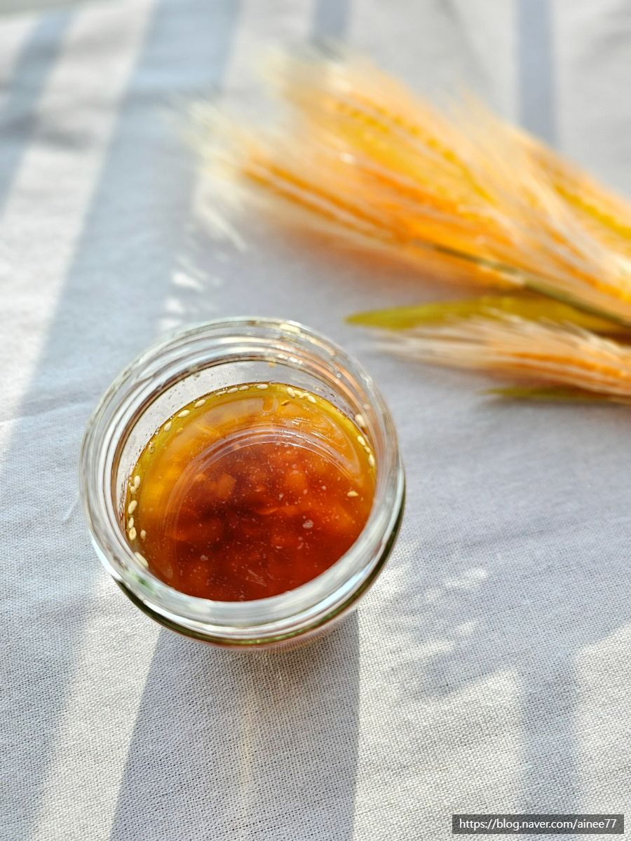 こうして完成した美味しい万能ねぎソースは、少し冷ましてから、清潔な密閉容器に移して冷蔵庫で保存します。冷蔵庫で約2週間ほど新鮮な状態でお楽しみいただけます。焼き肉、ビビンバ、各種和え物などに添えてみてください。豊かなねぎの香りと香ばしいごま油の風味が、どんな料理も格上げしてくれるでしょう!