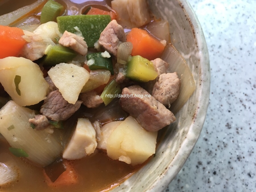 [パパ・トゥームのレシピ] 余ったラーメンスープの素を活用!豚肉の煮込み(シチュー)の作り方