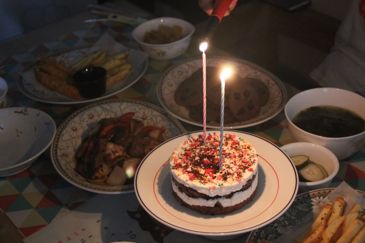 このミニケーキは、冷麺鉢の蓋を活用して冷蔵庫で1〜2時間ほど冷やしてから、お誕生日のお祝いの席に飾りました。私の愛情を込めて作った美味しいチョコレートクリームケーキで、素敵な時間をお過ごしください!