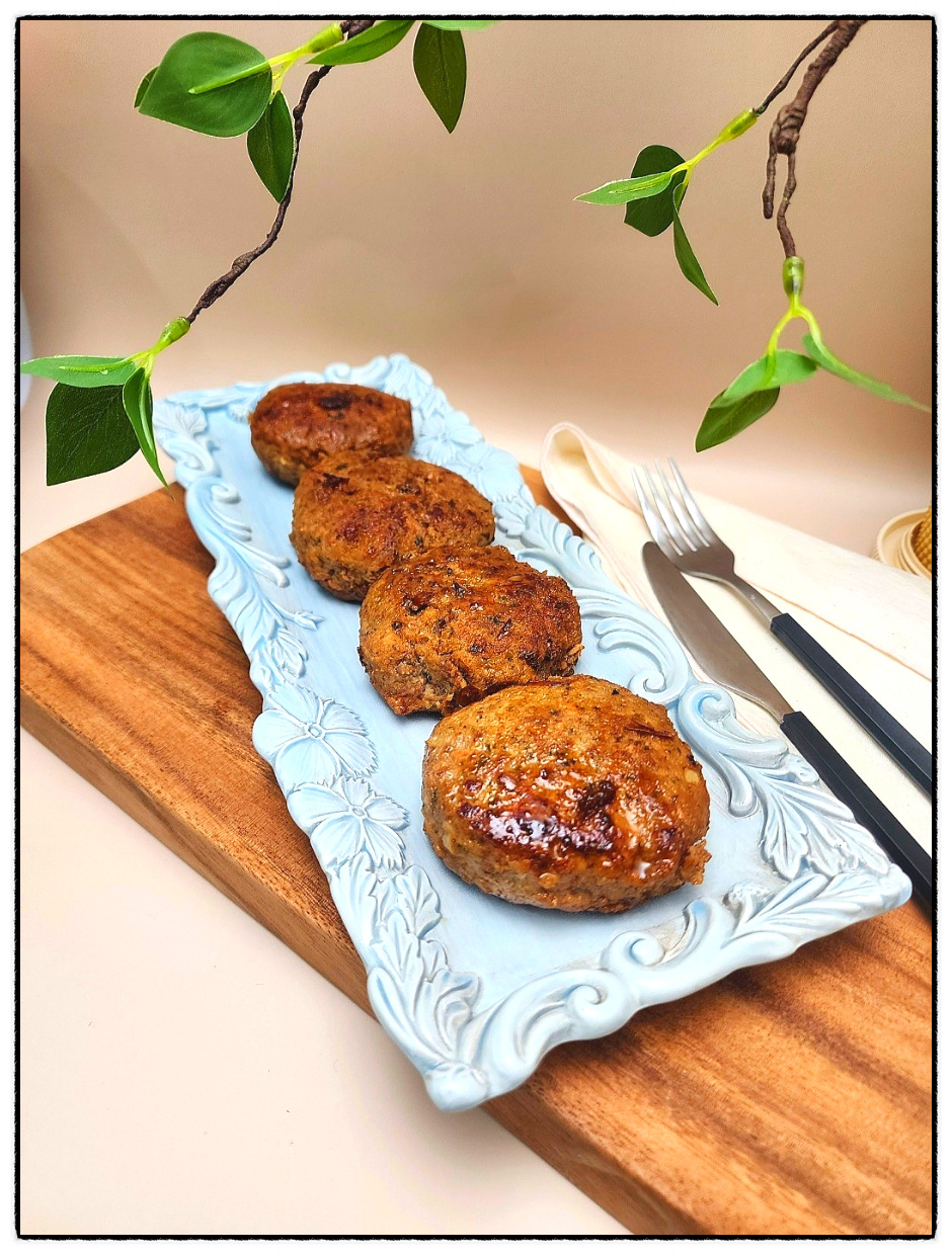 下味をつけた肉のタネに、細かく攪拌した玉ねぎと長ネギを加えて、再び手でよくこね合わせます。この時、タネがゆるすぎる場合は、パン粉を少量ずつ加えながら、扱いやすい固さに調整してください。パン粉はタネの水分を吸ってくれるので、成形しやすく、焼きやすくなります。私は野菜をたっぷり入れたのでタネが少し緩めだったので、パン粉を多めに加えました。タネが滑らかになるまで、しっかりとこねることが大切です。