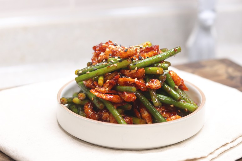 休暇中に近所の惣菜店で買ったキムチや数種類のおかずの中に、ニンニクの芽と干しエビの炒め物がありました。それがとても美味しかったのです。(そう、私だって惣菜を買って食べますよ、ははは) そして、全部食べ終わってしまったので、今回は材料を買ってきて自分で作ってみることにしました。この炒め物は、歯ごたえの良いニンニクの芽と香ばしい干しエビの組み合わせが絶妙で、ご飯がどんどん進む一品です。手軽に作れるのに本格的な味わいが楽しめます。