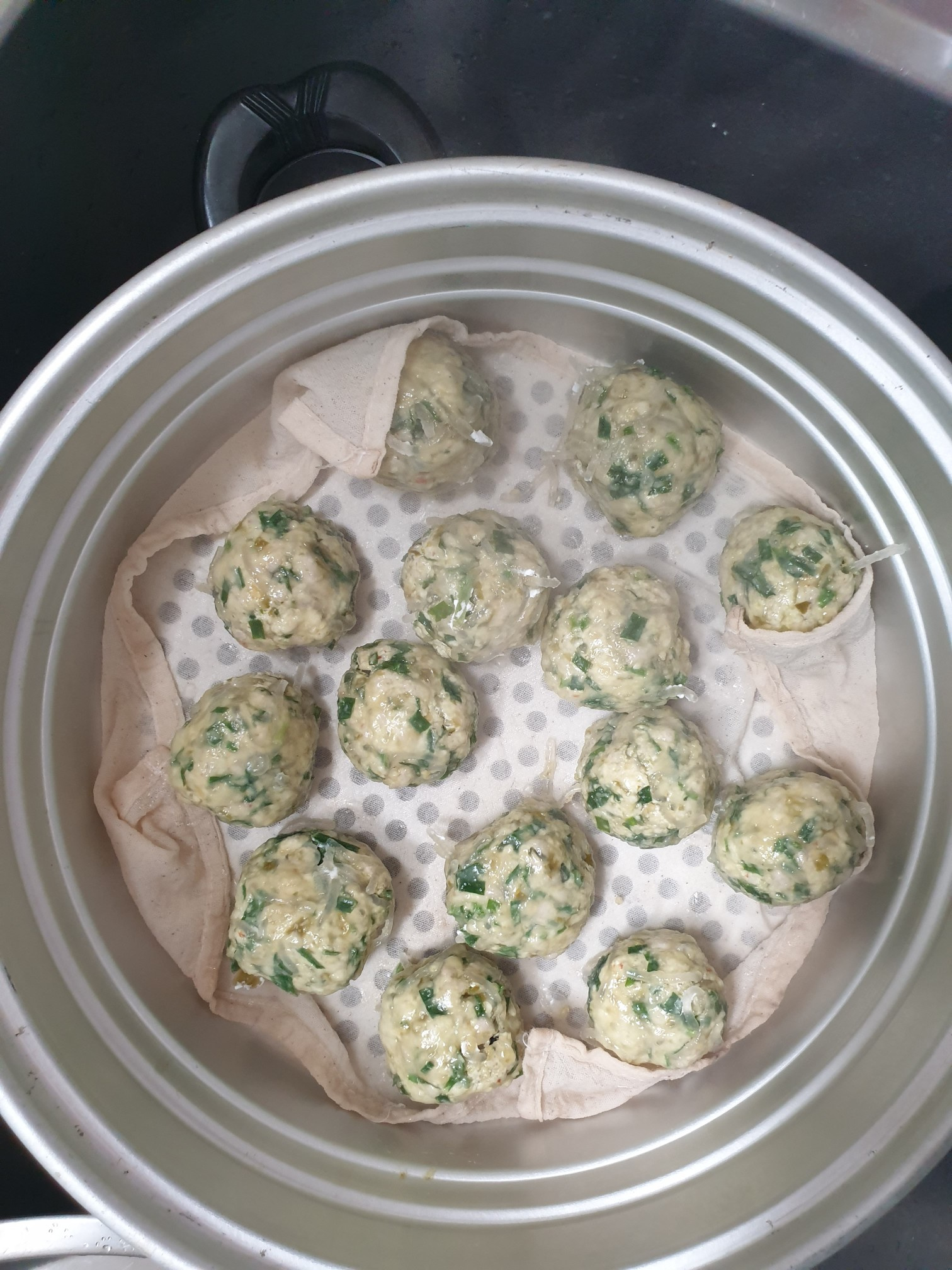 今回は、餃子の皮ではなく、片栗粉を使って蒸す特別な方法をご紹介します。蒸し器にキッチンペーパーや清潔な布巾を敷き、その上に食用油を丁寧に塗ってください。こうすることで、餃子が蒸し器にくっつかずにきれいに仕上がります。作った餡を適量取り、丸く平たい形に整えて油を塗った布巾の上に並べ、湯気の上がった蒸し器で15〜20分ほど蒸せば、美味しい自家製マンドゥの完成です!