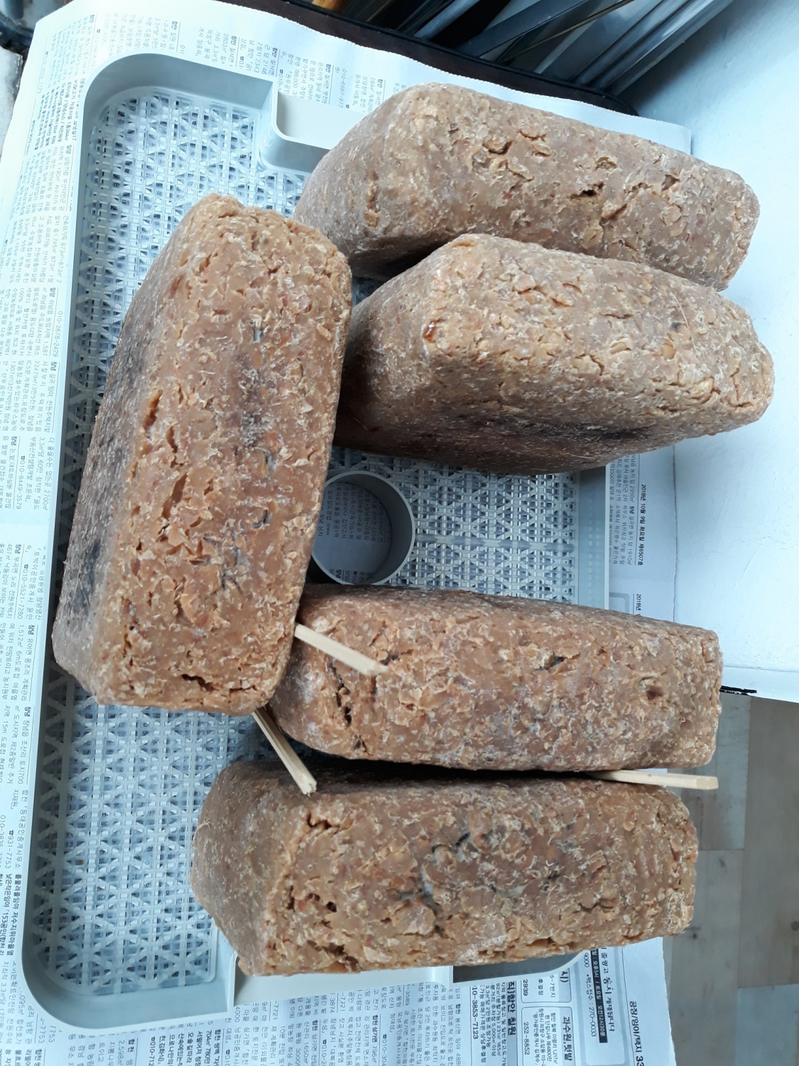 まず、農協のハナロマートなどで購入した市販のメジュ8kgを用意します。メジュの表面についたカビや汚れを乾いたブラシで優しく払い落とし、風通しの良い場所で2〜3日間、天日でしっかりと乾燥させてください。メジュを乾燥させることで、醤油の風味がより深く、すっきりとしたものになります。