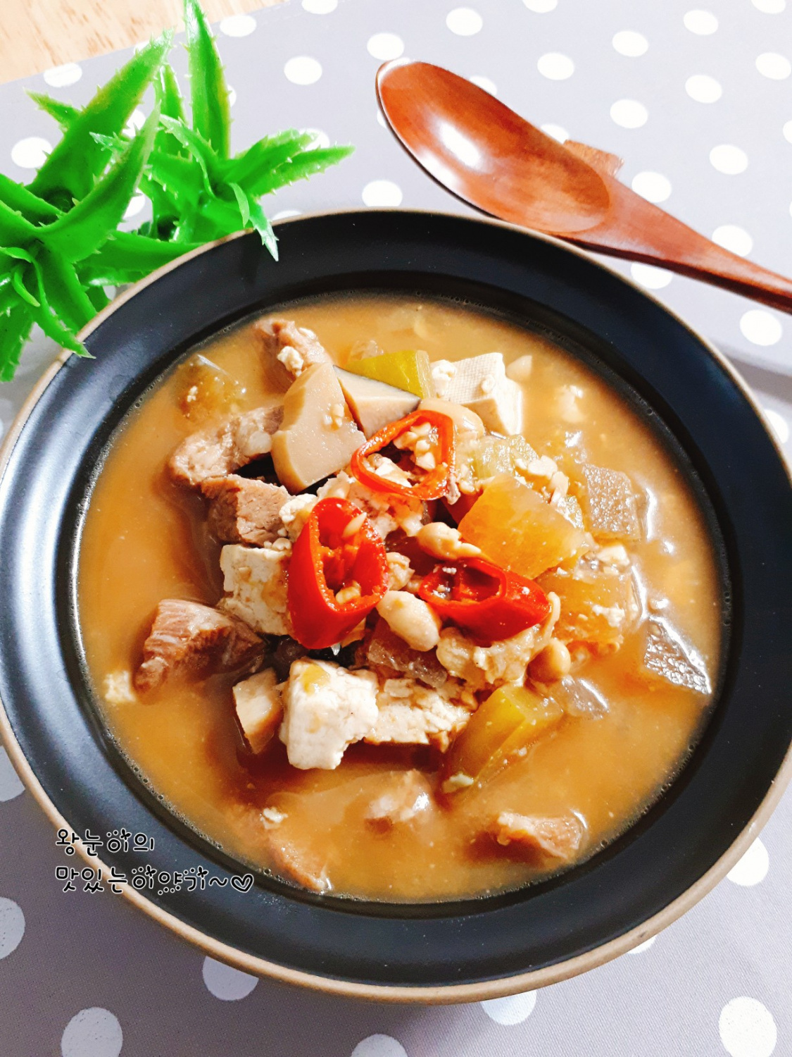 家庭料理の定番、チョングッチャン(濃厚な発酵大豆ペースト)とデンジャン(味噌)が調和し、深みのある豊かな味わいを誇るデンジャンチゲのレシピをご紹介します。ご飯がすすむこと間違いなしのこのチゲひとつで、家族みんなが満足できる美味しい食事が完成します。温かいスープが恋しい時や、肌寒い日に体を温めたい時にぜひ作ってみてください!