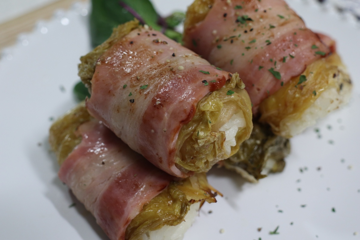 熟成白菜キムチとベーコンの絶妙なハーモニー、くるくる巻きレシピ