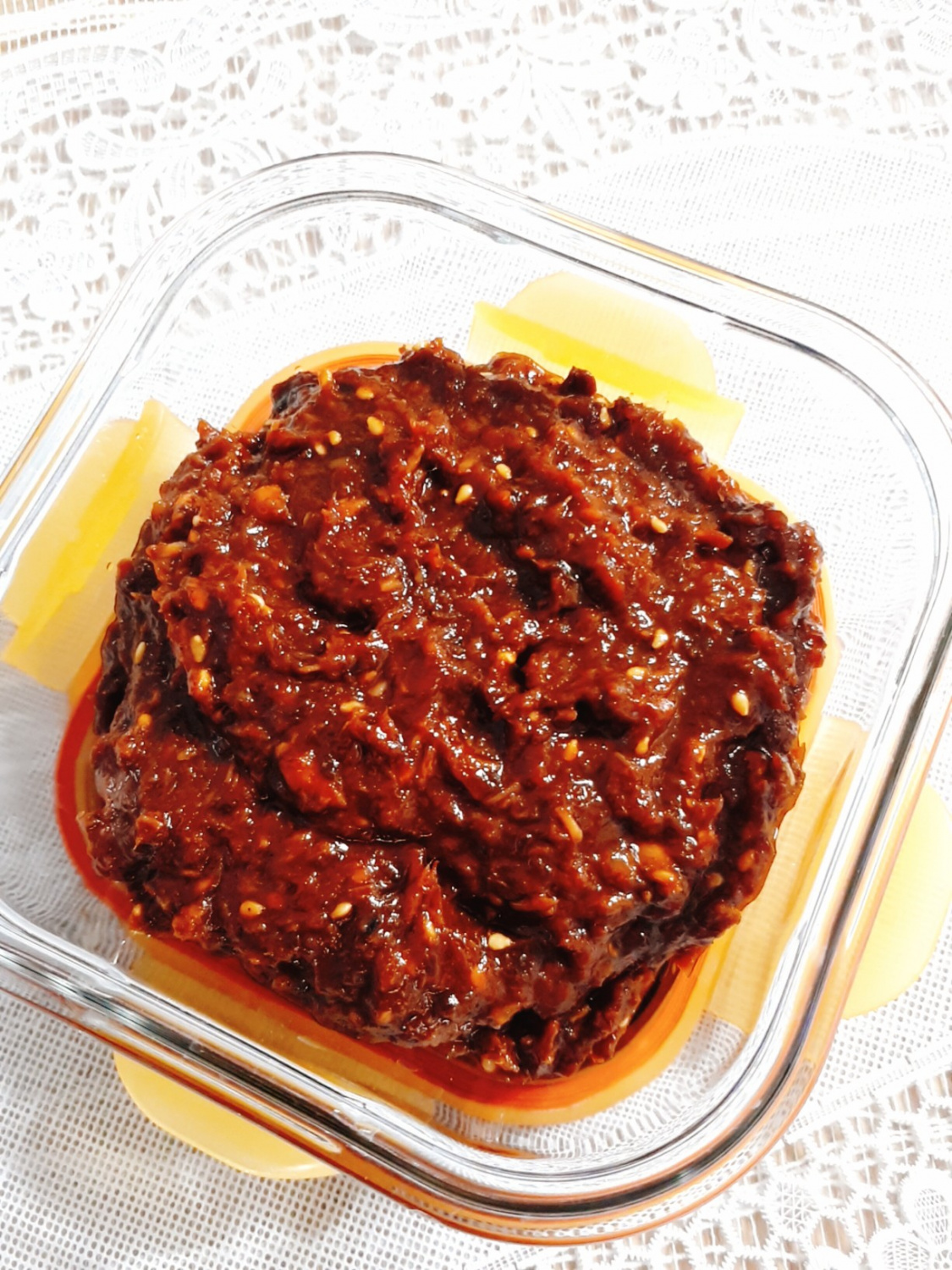 あっという間に美味しいツナサンジャンが完成しました!市販のサンジャンとは一味違う、よりまろやかな甘みと、深く濃厚な香ばしさが絶品のツナサンジャンをぜひ味わってください。体に優しい材料で作られているので、安心してお召し上がりいただけます。