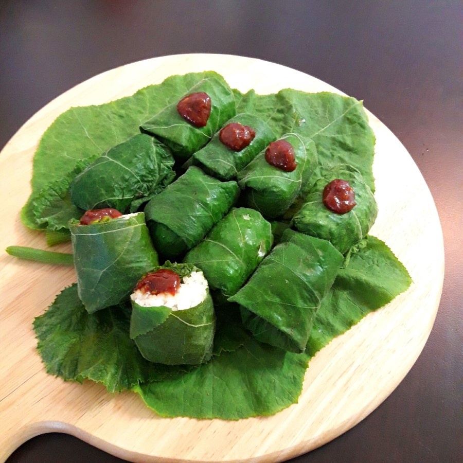 食べやすい大きさに切り分け、スケトウダラの卵巣の塩辛やサムジャンを添えて、美味しく召し上がれ!旬のズッキーニの葉を使った、健康的で美味しいサンパプの完成です。