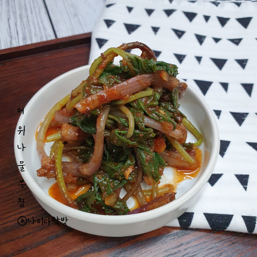 準備したツチアケビ(モイ)にタレを加えて、優しく揉むように和えてください。調味料が全体に均一に馴染むように混ぜ合わせた後、最後にゴマ油(またはエゴマ油)大さじ1を回しかけて軽くもう一度和えれば、香ばしい風味が加わり完成です。