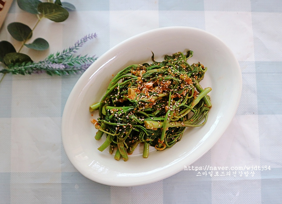 歯ごたえのある食感と、ほろ苦さ、そして高麗人参やドクダミを思わせる風味が魅力のヌンゲスンマは、「山の朝鮮人参」とも呼ばれています。軽く茹でてチョゴチュジャン(甘辛い唐辛子酢味噌)につけて食べても美味しいですし、今日のようにサムジャンやデンジャンで和えても、素晴らしい春の味覚となります。