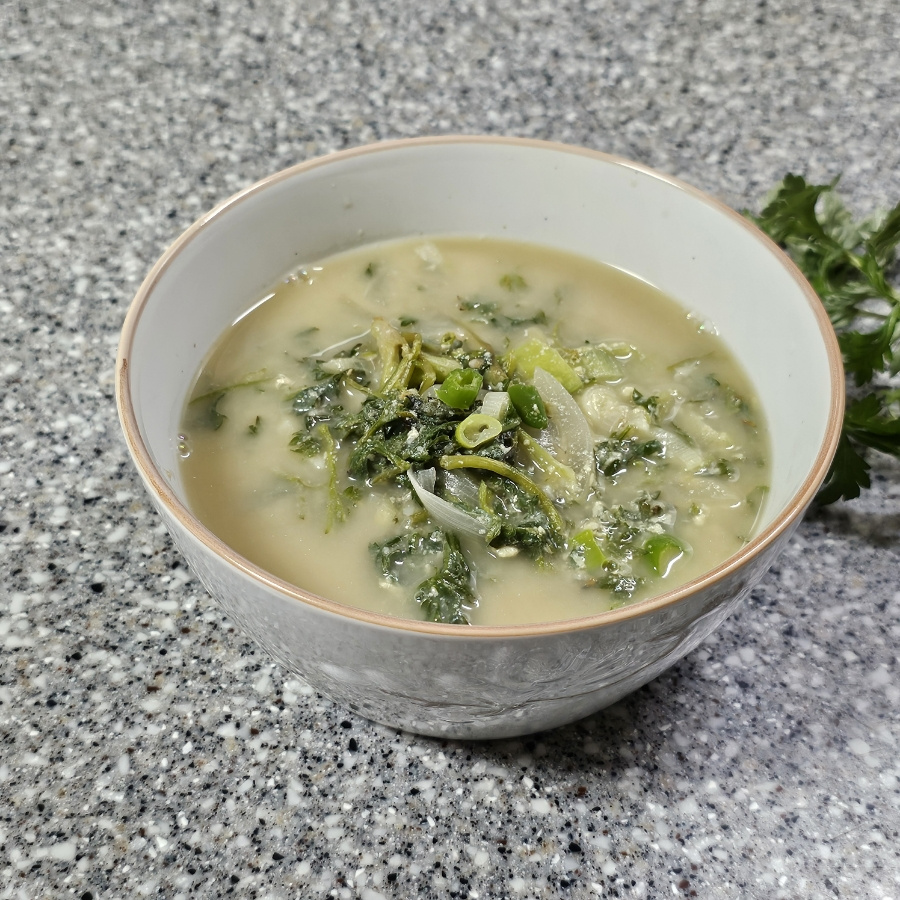 春の爽やかな香りが満載の若葉よもぎを使ったスープ(チゲ)のレシピです。デトックス効果や成人病予防にも良いとされ、米のとぎ汁と大豆粉でコクと風味豊かに仕上げます。