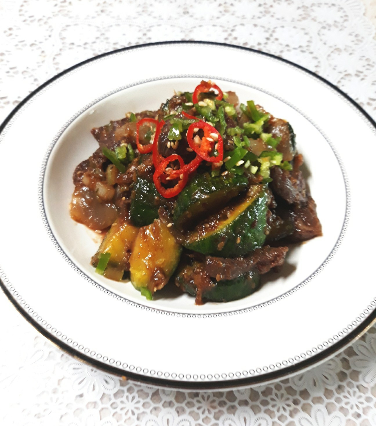 柔らかい牛バラ肉と甘いズッキーニの炒め物レシピ
