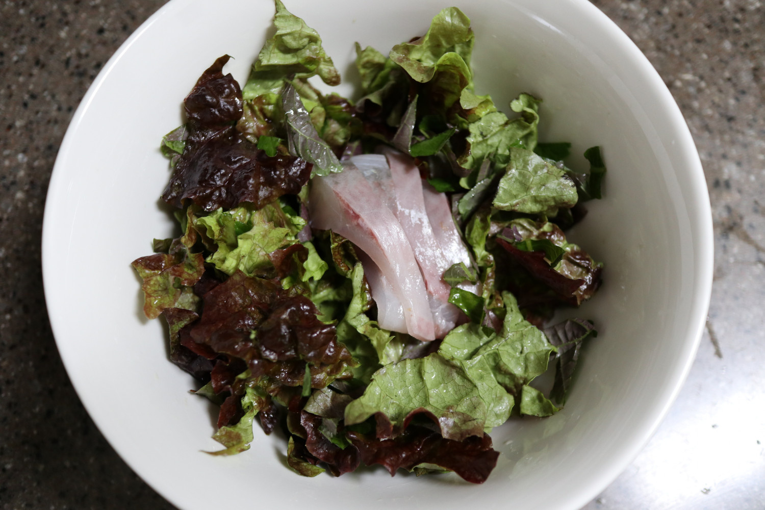 まずは、この美味しい天然真鯛の刺身を楽しみましょう!(またはヒラメの刺身など)この特別な刺身をさらに美味しく味わう方法、それはまさに絶品ビビンククスに変身させることです。旬の真鯛を新鮮なうちに味わい、もし余ったら、ためらわずにビビンククスにしてみてください!