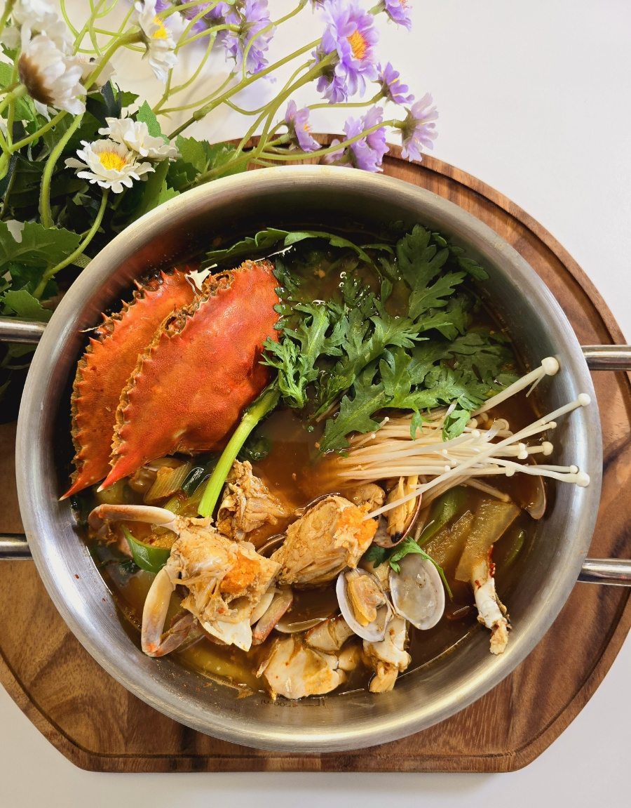 特別な材料を使わなくても、新鮮なケジャン(ワタリガニ)から染み出す濃厚な海の風味と、ピリ辛のヤンニョム(調味料)が絶妙に絡み合うケジャンタンです。ご飯がすすむこと間違いなしの、体が温まる絶品鍋で、心も体もほっと一息つきましょう。