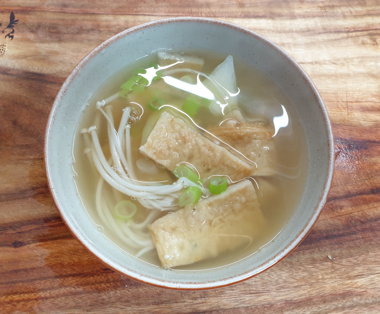 主な材料- 四角いおでん(魚のすり身)3枚(お好みで厚みや形を変えてください)